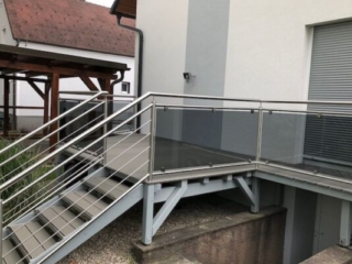 Geländer aus Metall und Glas